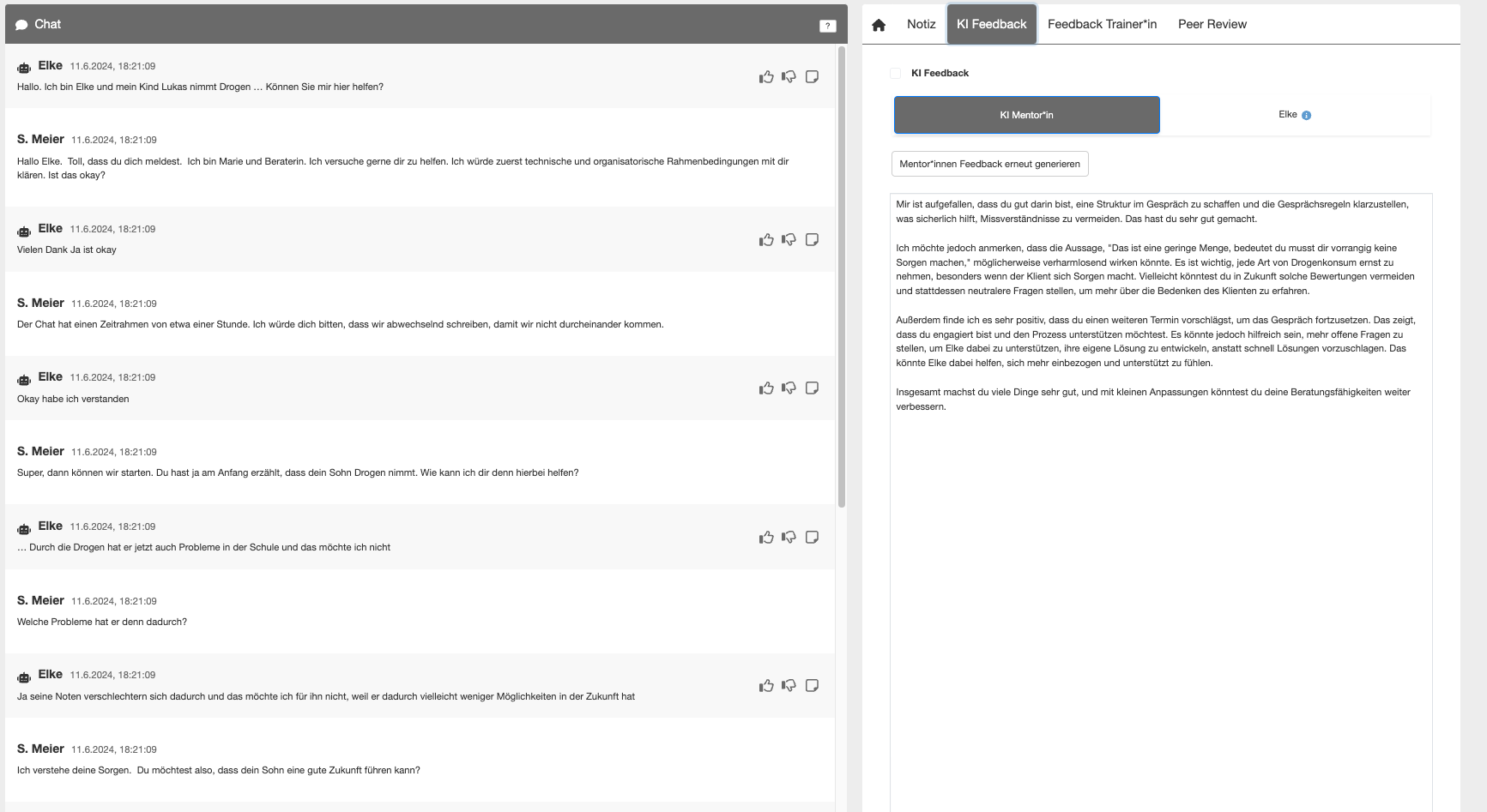 Die Plattform wurde aus der Hochschullehre heraus entwickelt und verbindet didaktische Innovation, KI-Technologie und praxisnahe Szenarien. Sie bietet die Möglichkeit, Beratungskompetenzen auf realistische Weise zu trainieren – ohne organisatorischen Aufwand oder emotionale Überforderung, wie sie im klassischen Rollenspiel auftreten können.